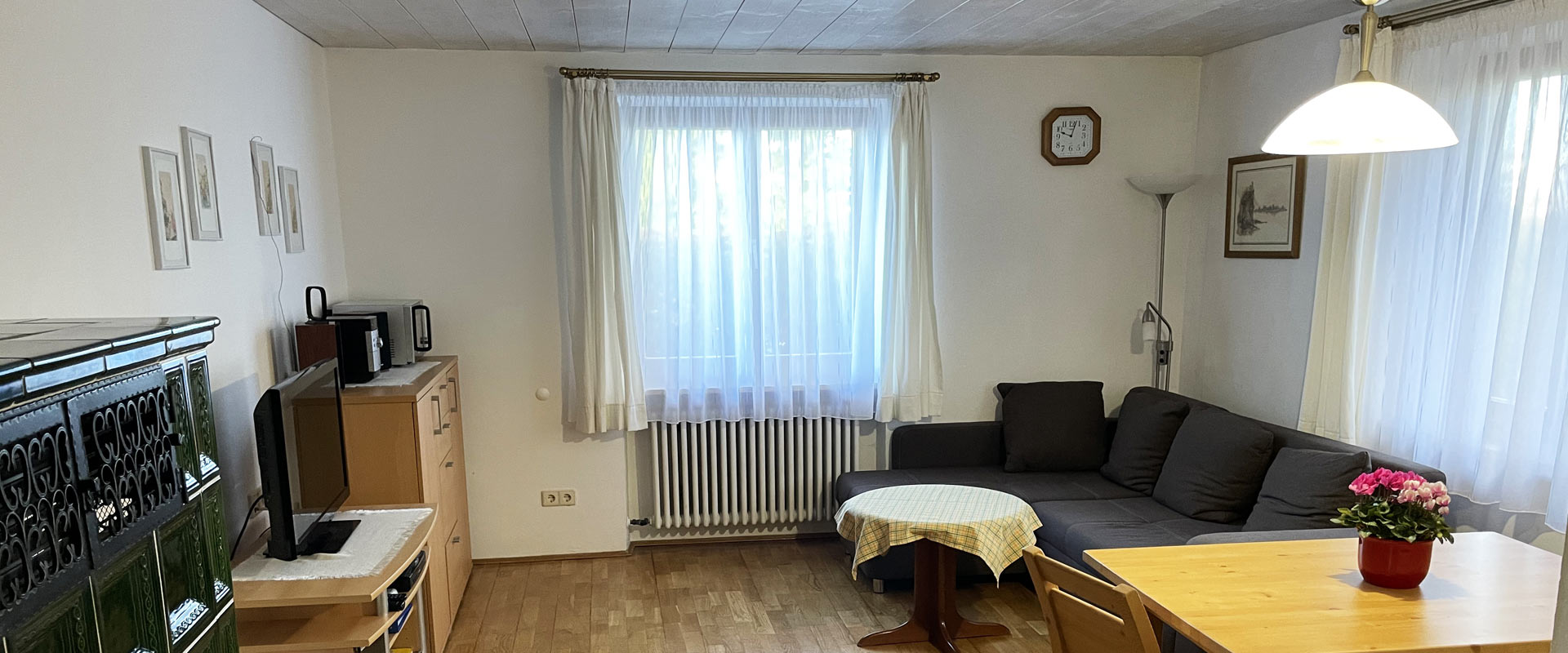 Die Erdgeschosswohnung verfügt über einen eigenen Eingang und ist für 2 Personen ausgelegt. Eine kleine Terrasse im Grünen lädt zum Entspannen ein.